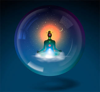 Anschliessend kann man eine Lichtkugel oder –Ei um sich herum visualisieren. Gut sind reflektierende Farben wie weiss, silbern oder golden. Bestimmte Chakren mögen einen besonderen Schutz brauchen. Bei vielen Menschen ist der Solarplexus besonders empfindlich, der bekommt dann eine Extrakugel.